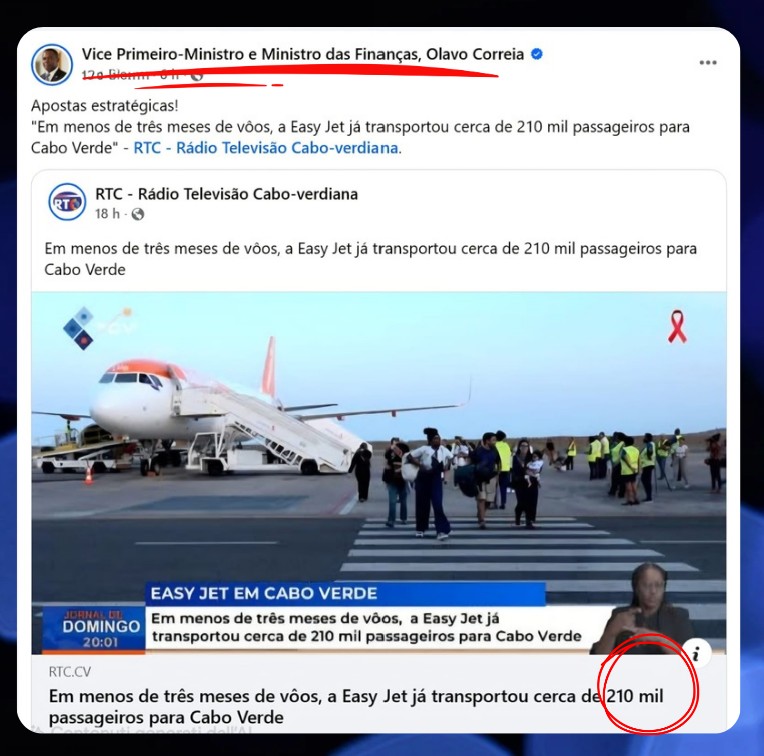 Este episódio expõe um problema sério: mesmo órgãos credíveis podem falhar quando não questionam se um número faz sentido lógico básico.A chegada da EasyJet é excelente para Cabo Verde. Mas o sucesso mede-se com dados reais, não ficção estatística.