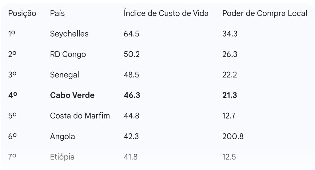 Embora o turismo continue a ser o principal pilar da economia cabo-verdiana, os dados da Numbeo sugerem uma pressão crescente sobre a população residente. Países como o Senegal e a Costa do Marfim também enfrentam pressões semelhantes em centros urbanos como Dakar e Abidjan. No caso de Cabo Verde, a insularidade funciona como um filtro de custos: tudo o que chega por via marítima ou aérea carrega consigo taxas e custos logísticos que acabam por ser transferidos para o consumidor final, tornando a cesta básica uma das mais caras da região.