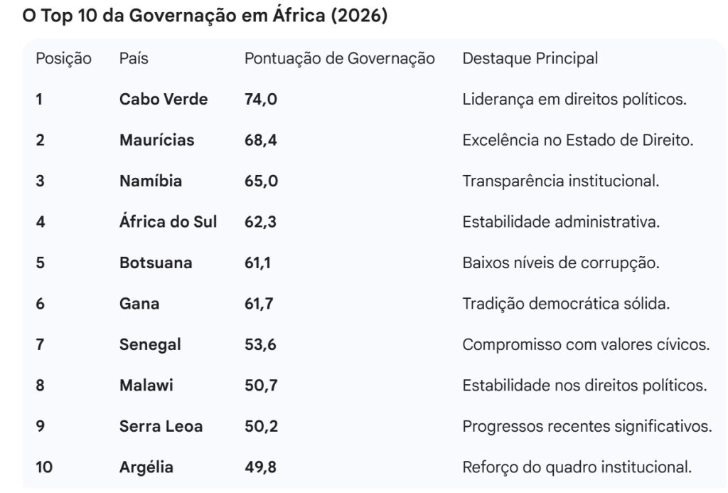 O mais recente relatório do World Economics Governance Index 2026, amplamente divulgado pelo portal Business Insider Africa, trouxe notícias extremamente positivas para a nossa nação e para todos os cabo-verdianos na diáspora. Cabo Verde consolidou-se como o país melhor governado de todo o continente africano, alcançando uma pontuação de 74,0. Este índice não reflete apenas a estabilidade política momentânea, mas sim a eficácia das instituições e o compromisso contínuo com os valores democráticos que definem a nossa sociedade desde a abertura política.