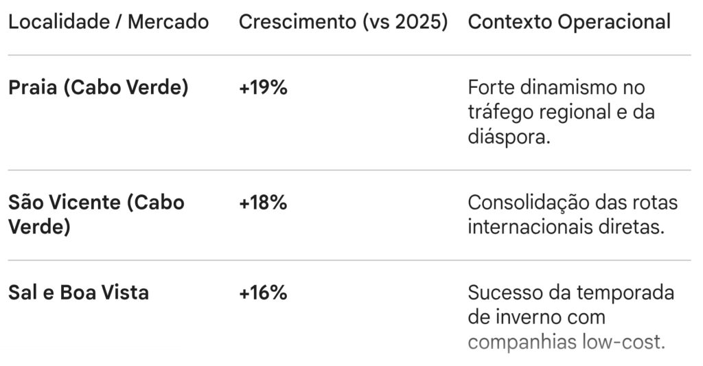 ​O crescimento verificado entre janeiro e março de 2026 foi transversal às principais infraestruturas aeroportuárias do país, demonstrando uma vitalidade tanto no tráfego doméstico e da diáspora quanto no fluxo puramente turístico.
