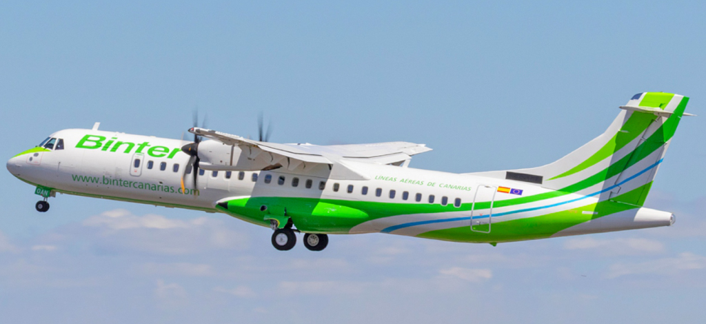 O ATR 72-600 da Binter Canarias é um turboélice moderno, eficiente no consumo de combustível e projetado para curtas distâncias, transportando entre 70 e 78 passageiros.