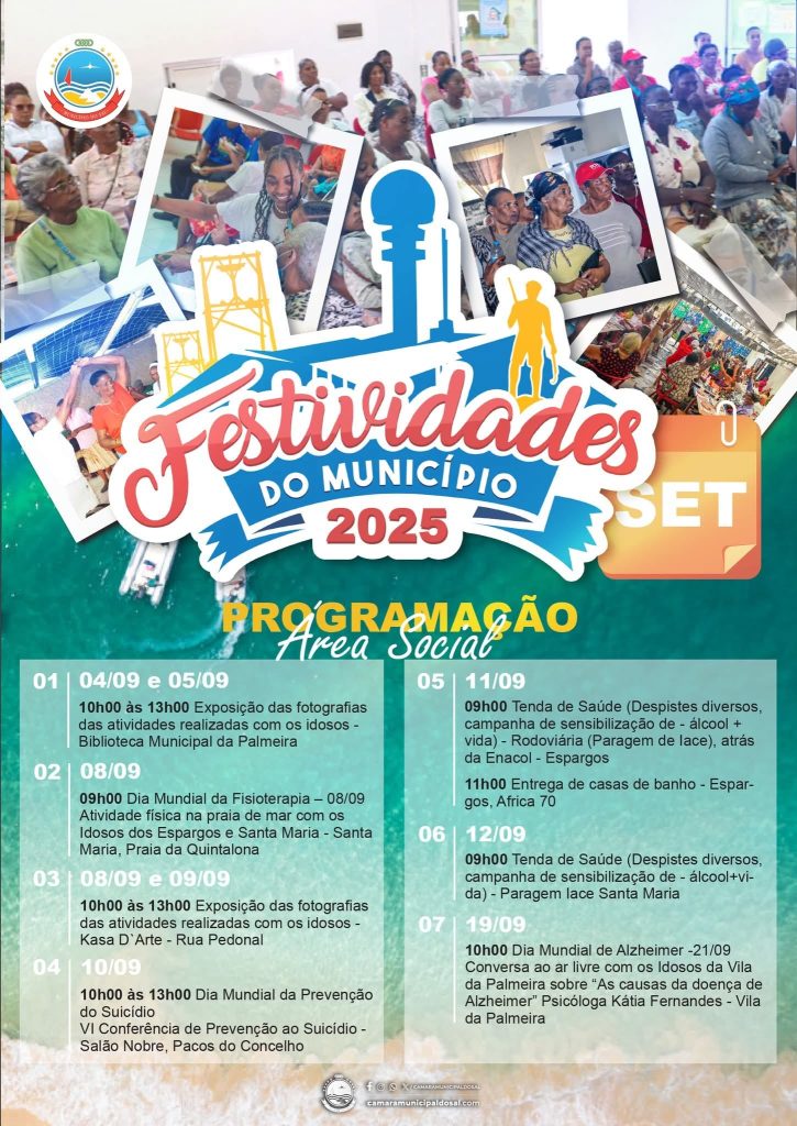 “As Festividades do Município do Sal 2025 apostam numa programação social inovadora, destacando ações de inclusão, prevenção em saúde e valorização dos idosos, transformando setembro num mês de cidadania e bem-estar para toda a comunidade”
