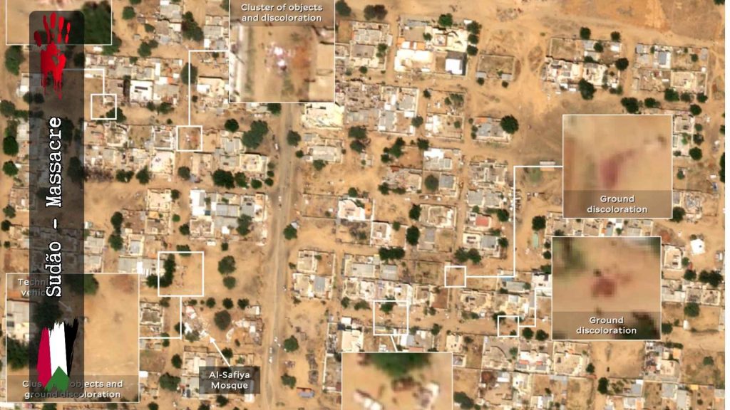 Analistas da Universidade de Yale utilizaram tecnologia de satélite para examinar as áreas afetadas e constatar a existência de localizações onde centenas de corpos foram deixados nas ruas, confirmando relatos de assassinatos sistemáticos de civis. Segundo as imagens, o massacre ocorreu em menos de 72 horas após a ocupação da cidade pelos RSF, e aponta para uma tragédia de proporções alarmantes.De acordo com a Sudan Doctors Network, pelo menos 1.500 pessoas foram mortas, incluindo pelo menos 460 no Hospital Saudita, uma tragédia de proporções alarmantes.