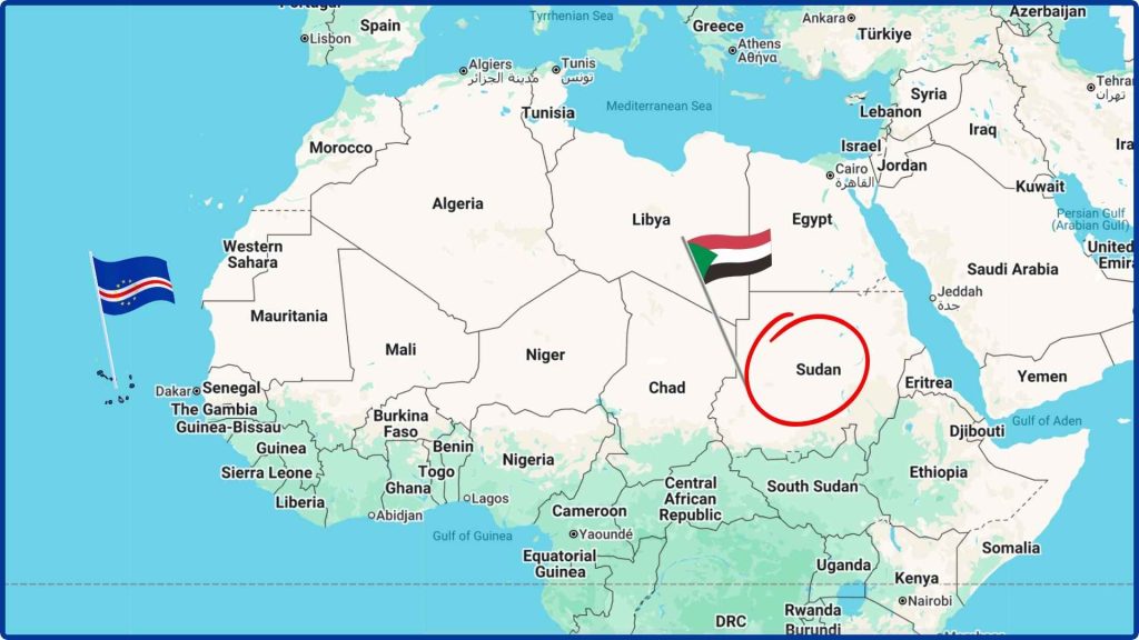 O Sudão é um país no norte da África, com uma população de cerca de 52 milhões de pessoas, cuja economia se baseia principalmente na agricultura e produção de petróleo. Politicamente, o país enfrenta grande instabilidade, com conflitos internos prolongados, incluindo a guerra na região de Darfur e confrontos recentes entre o exército e grupos paramilitares. A capital é Cartum, situada na confluência dos rios Nilo Azul e Nilo Branco.