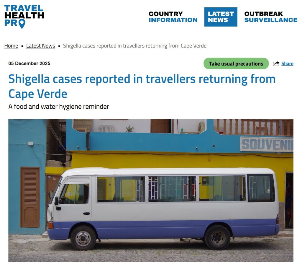 - TravelHealthPro/NaTHNaC – “Shigella cases reported in travellers returning from Cape Verde”, 5 dezembro 2025