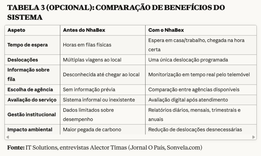 O que começou como um trabalho académico transformou-se rapidamente numa empresa — a IT Solutions — que desenvolveu e implementou o sistema NhaBex em larga escala. O apoio de professores da Uni-CV foi fundamental para que o projeto saísse do papel e se tornasse realidade. O sistema entrou em operação comercial a partir de meados de 2018.