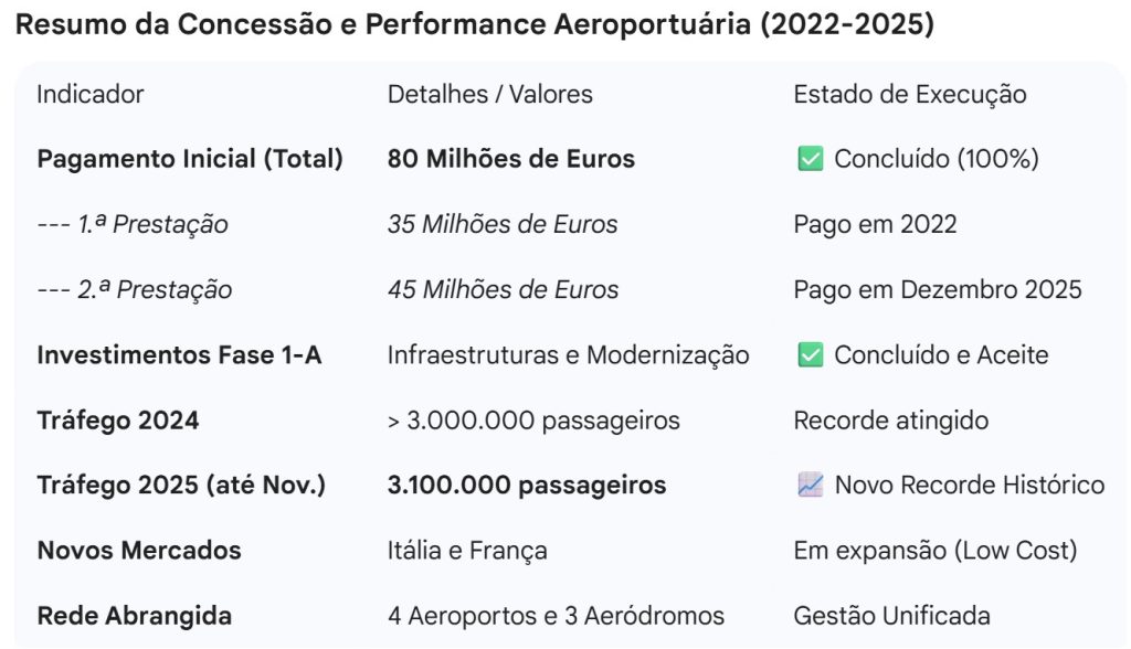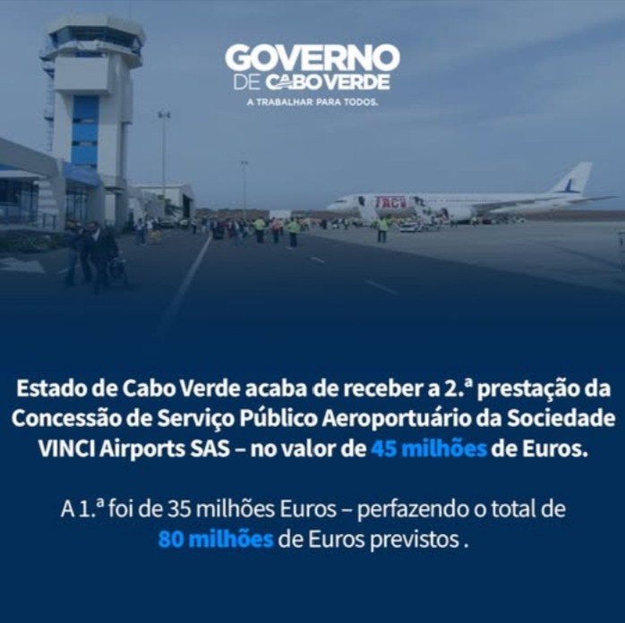 “Com a liquidação da segunda prestação de 45 milhões de euros pela VINCI Airports, Cabo Verde completa o encaixe de 80 milhões e celebra o recorde histórico de 3,1 milhões de passageiros em 2025”