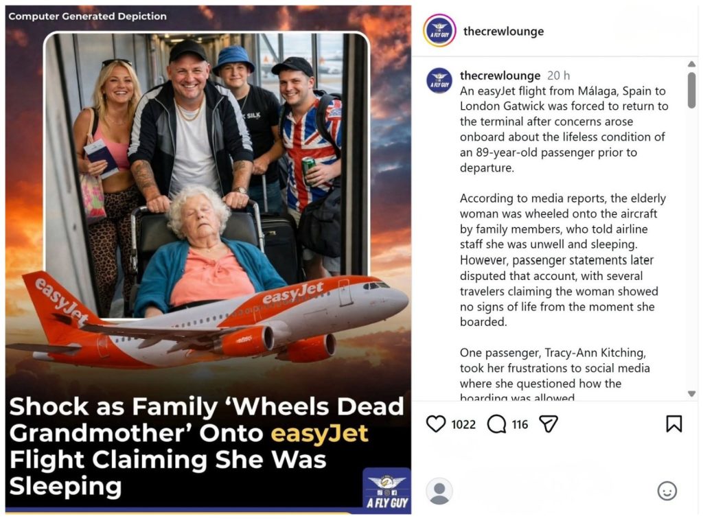 “O caso acabou também alvo de ironia nas redes, como neste post publicado na página de aviação ‘The Crew Lounge’ no Instagram.”