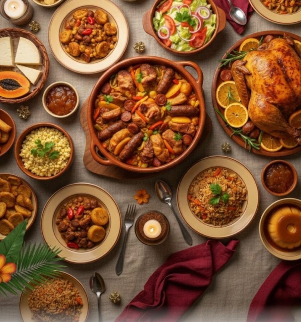 A gastronomia de Natal em Cabo Verde é um reflexo da nossa história de resiliência e criatividade. Recordamos que, tradicionalmente, o Natal era a época do “matar do porco” nas zonas rurais, garantindo a carne fresca para a festa, enquanto nas cidades a influência europeia introduzia o peru e o bacalhau. Hoje, a mesa de Natal é um banquete que une o luxo do mar ao conforto dos produtos da terra, sendo o momento de maior partilha entre a comunidade local e os emigrantes que regressam a casa.