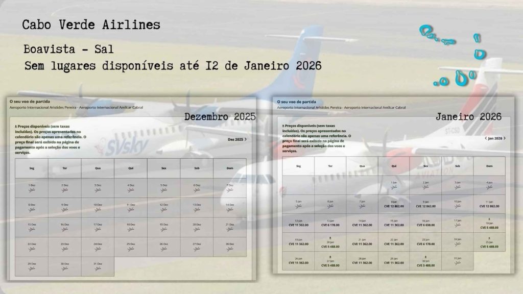 Esta realidade pode ser confirmada nos sistemas de reserva da Cabo Verde Airlines, onde o calendário para este período não apresenta qualquer disponibilidade para esta rota vital.
