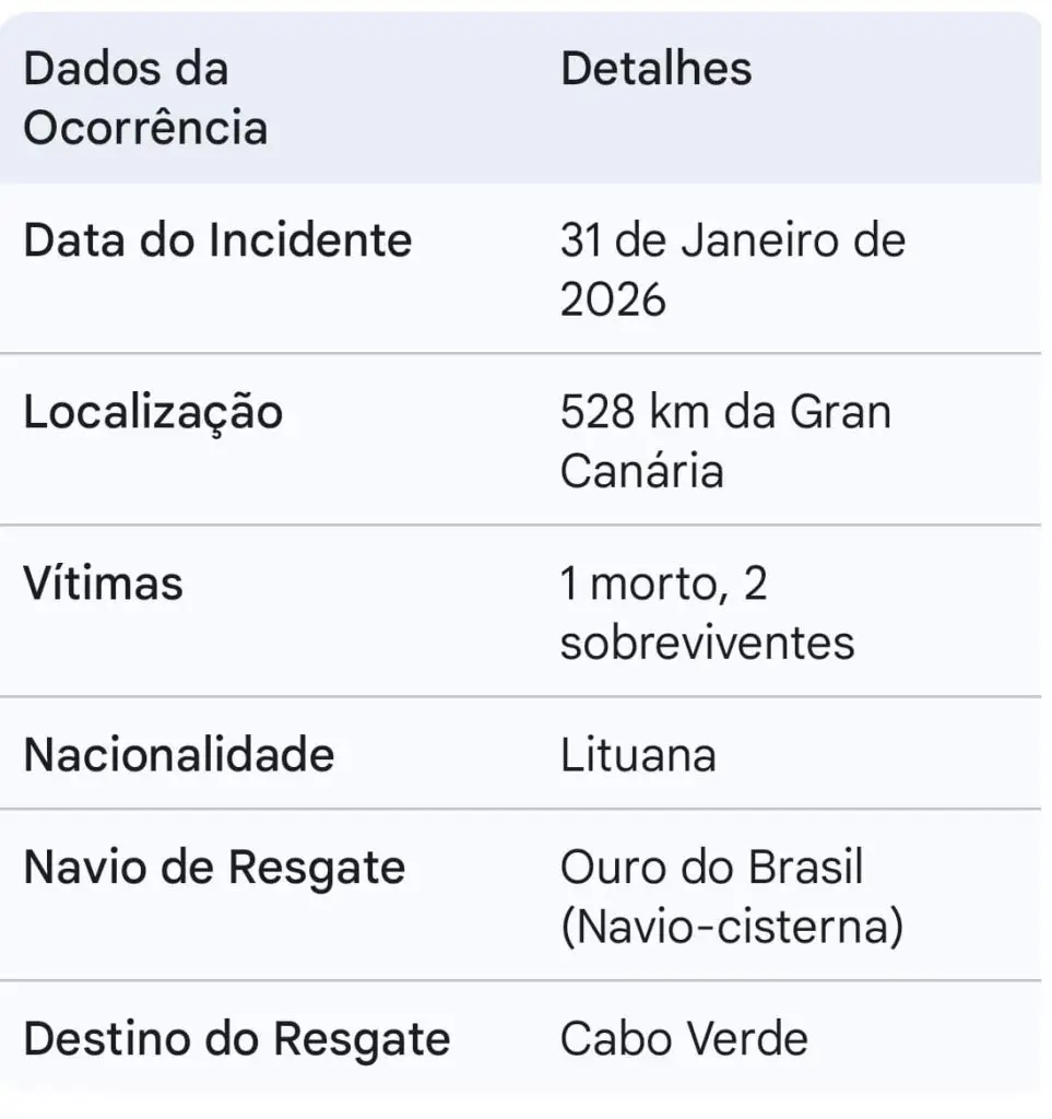 “Resgate dramático a 500 quilómetros das Canárias culmina com a morte de um tripulante lituano, enquanto dois sobreviventes recebem auxílio a bordo de um navio-cisterna em direção ao arquipélago”