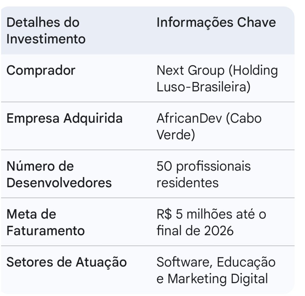 O cenário tecnológico em Cabo Verde acaba de receber um impulso significativo com o anúncio de um novo investimento internacional. O Next Group, uma holding luso-brasileira com forte atuação nas áreas de tecnologia e educação, oficializou a aquisição da AfricanDev, uma empresa de desenvolvimento de software sediada no arquipélago. Este movimento estratégico sinaliza a confiança de investidores externos no potencial humano e técnico do país, posicionando Cabo Verde como um ponto fulcral na estratégia de expansão global do grupo.