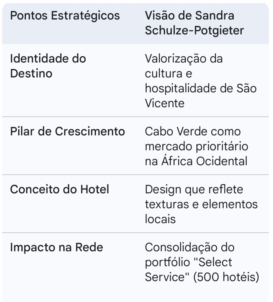 “Sandra Schulze-Potgieter destaca o espírito vibrante e a autenticidade de Mindelo como fatores decisivos para a chegada da gigante hoteleira ao arquipélago”