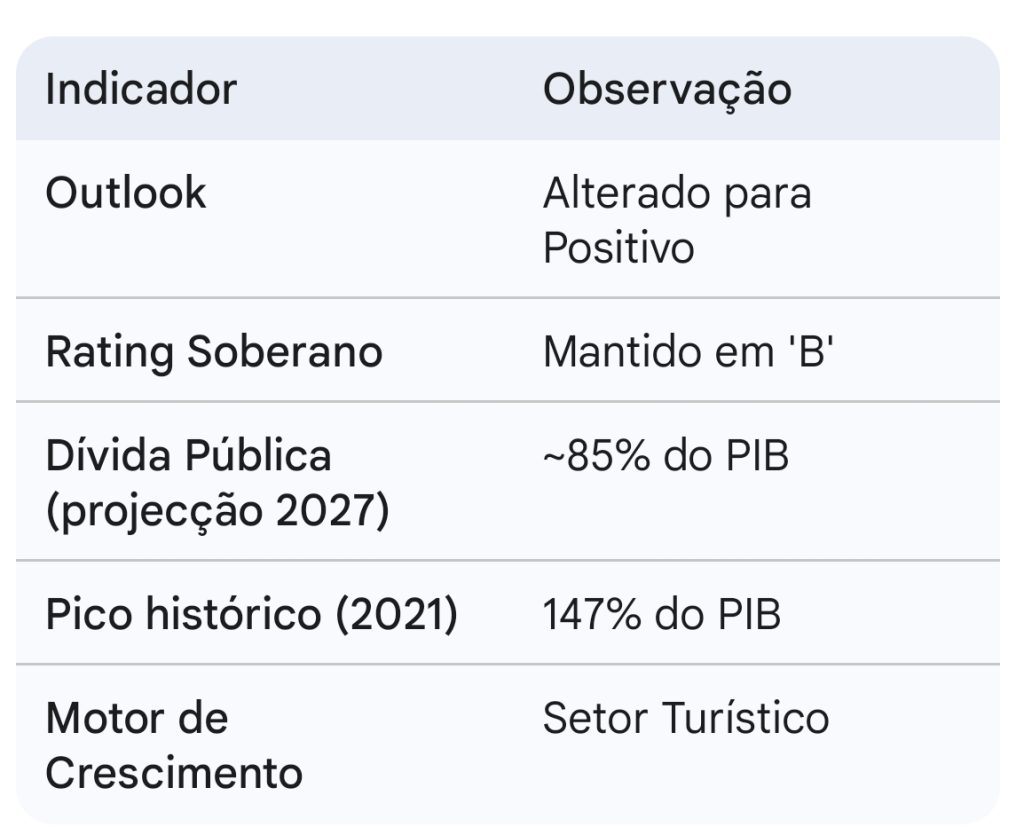 “A agência de notação financeira reviu o outlook do país de estável para positivo, consolidando a confiança na trajetória de redução da dívida e na dinâmica do turismo”